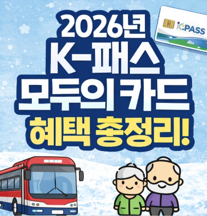 2026년, 대중교통 이용자라면 꼭 알아야 할 반가운 소식이 있습니다!국토교통부는 대중교통 정액제 ‘모두의 카드(K-패스)’를 전면 도입하며,혜택을 더욱 강화한다고 밝혔습니다.