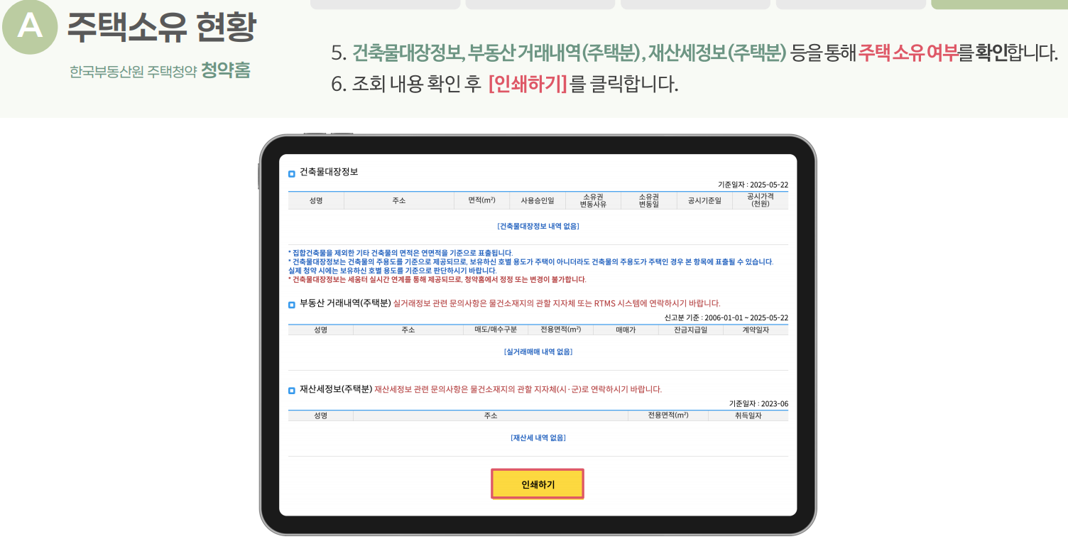 - 본인 및 세대원의 무주택/유주택 여부 즉시 확인 가능