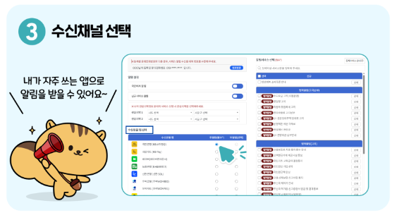 - ③ 수신 채널 선택: 네이버, 토스 등 자주 쓰는 앱 선택