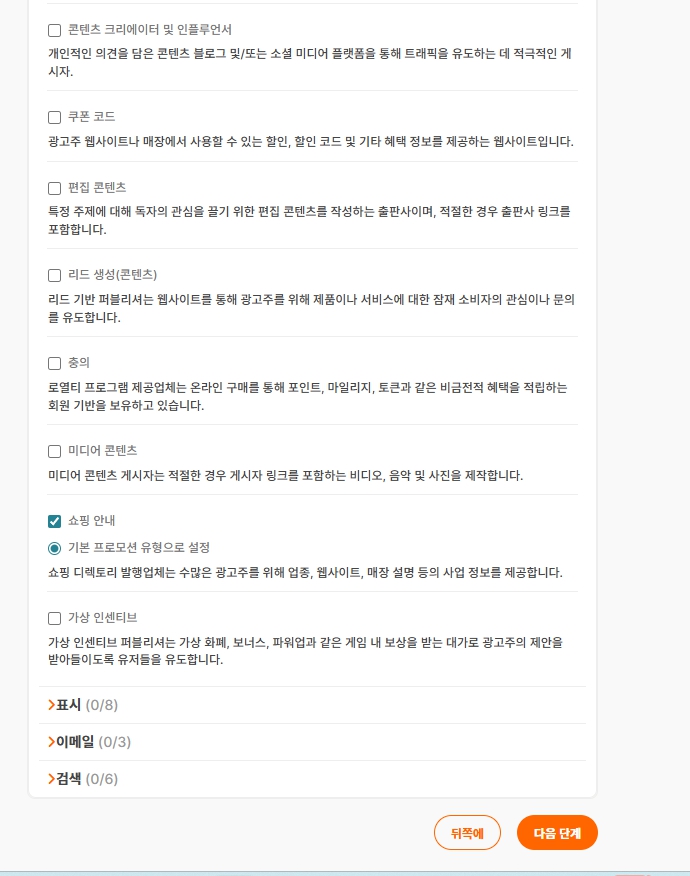 저는 아래 선택했어요..다른 분들은 광고 방법이 다 다를테니까 저랑 똑같이 하면 안됩니다. 여러분꺼 선택해야해요..