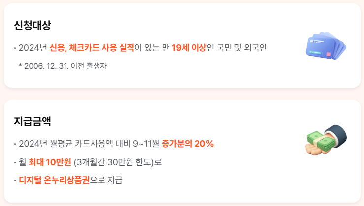 - 2024년 월평균 카드 사용액 대비 9~11월 증가분의 20%