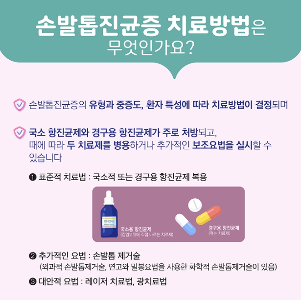 손발톱진균증은 감염 범위와 심각도에 따라 치료법이 달라집니다.