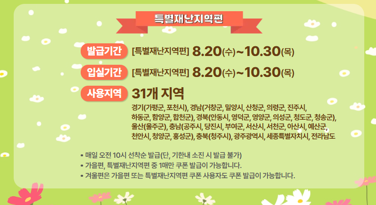 - 중복 발급 불가: '가을편'과 '특별재난지역편'은 중복 발급 불가
