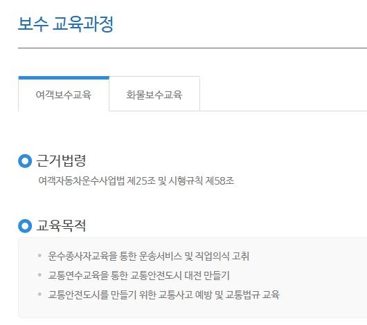 - 관할: 대전광역시 운수종사자 보수교육 전담 기관