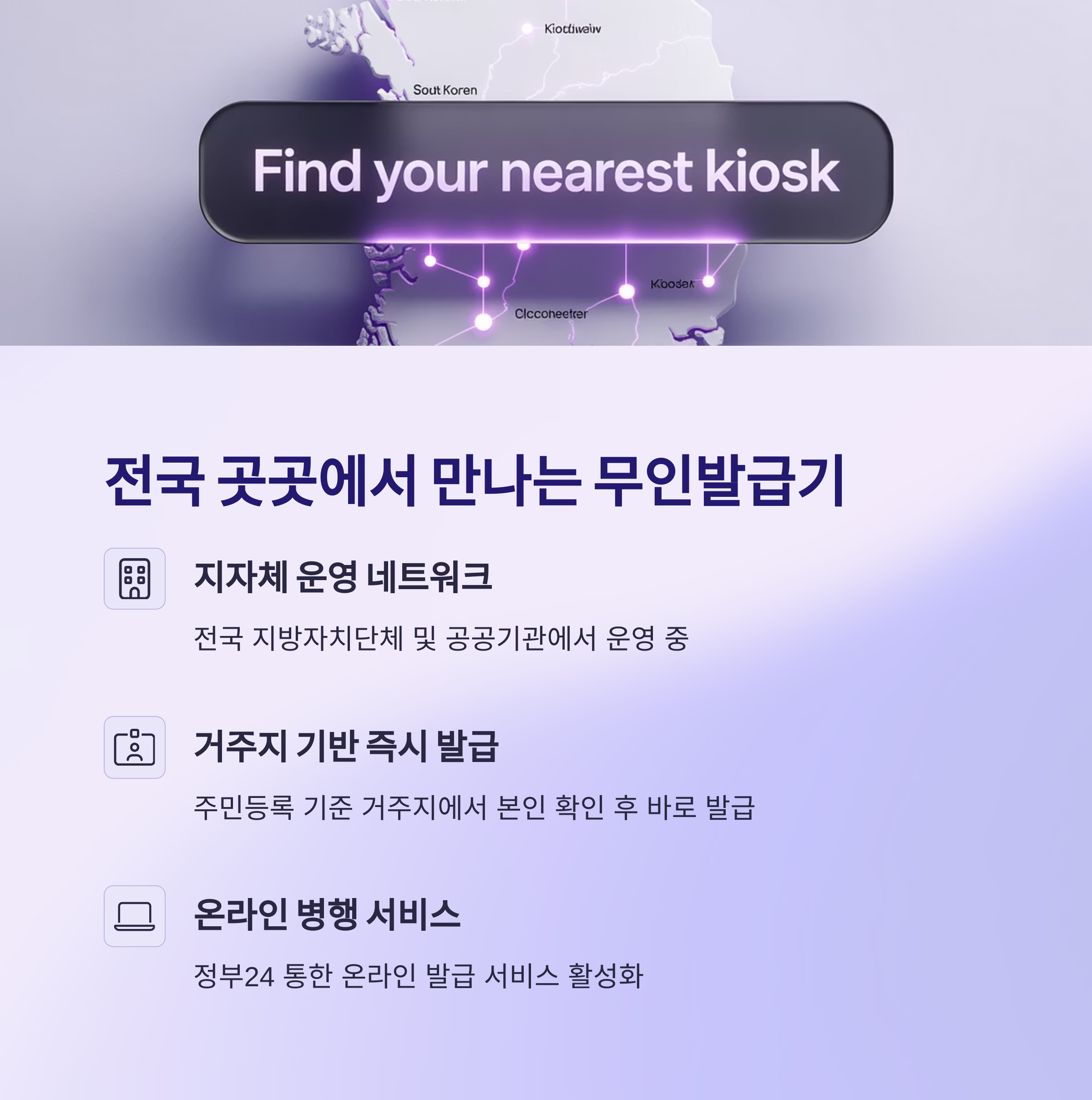 | 무인발급기 운영 지역 | 전국 대부분 지자체 |