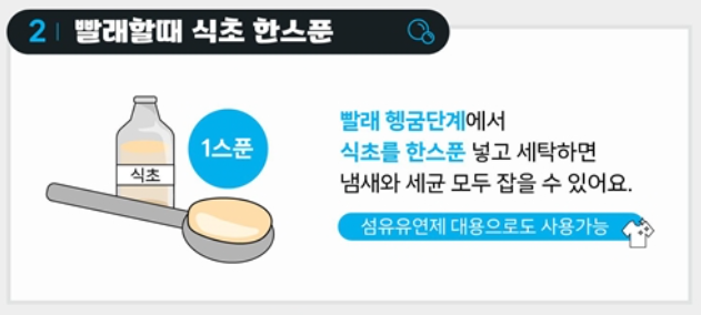 헹굼 단계에서 식초를 한 스푼 넣는 것만으로도 세균과 냄새를 잡아줍니다.
