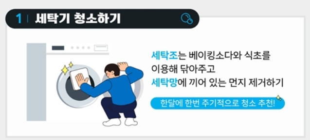 - 세탁기 청소는 한 달에 한 번, 식초는 헹굼단계에!