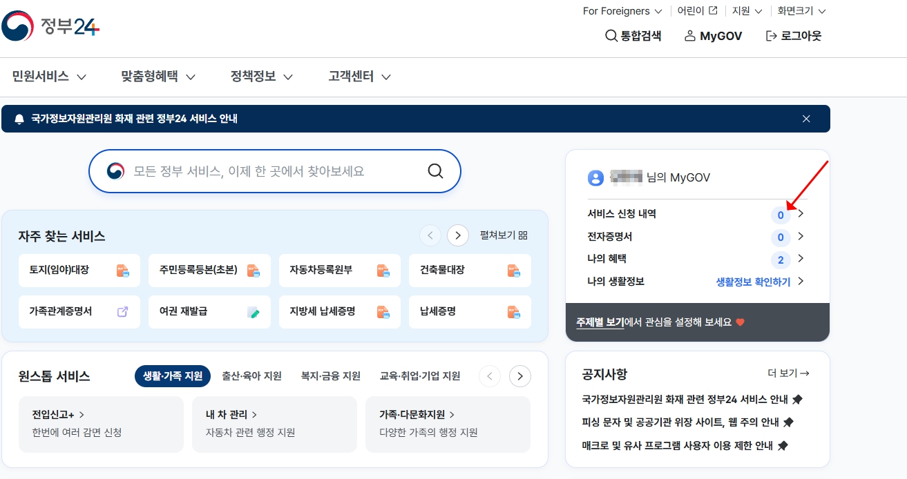 1️⃣ 정부24 사이트에서 발급 이력 확인하기