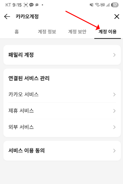 • 카카오계정 → 보안 → 연결된 서비스 관리에서