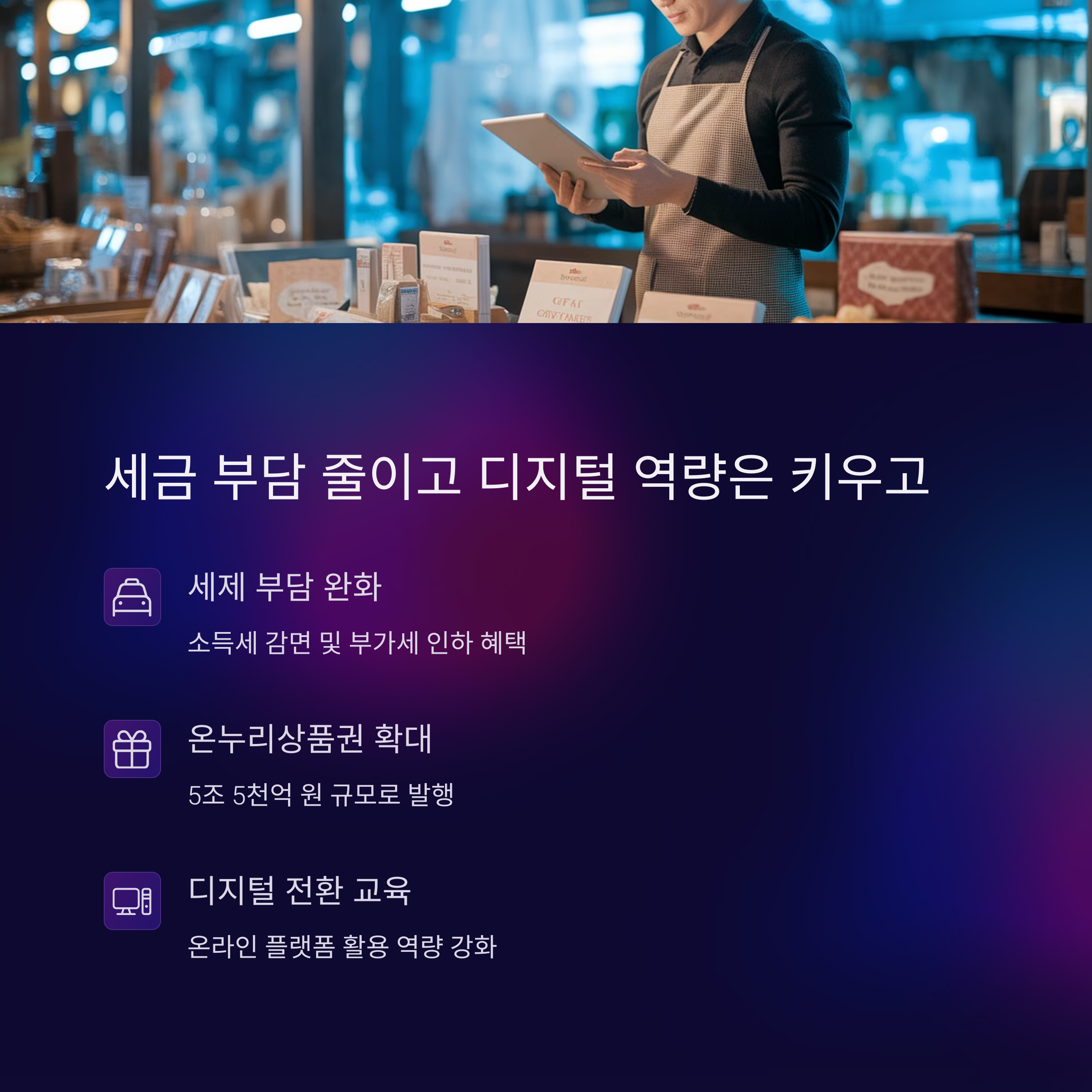 2025년 소상공인 지원 정책의 핵심은 경영 부담 완화와 디지털 전환입니다.