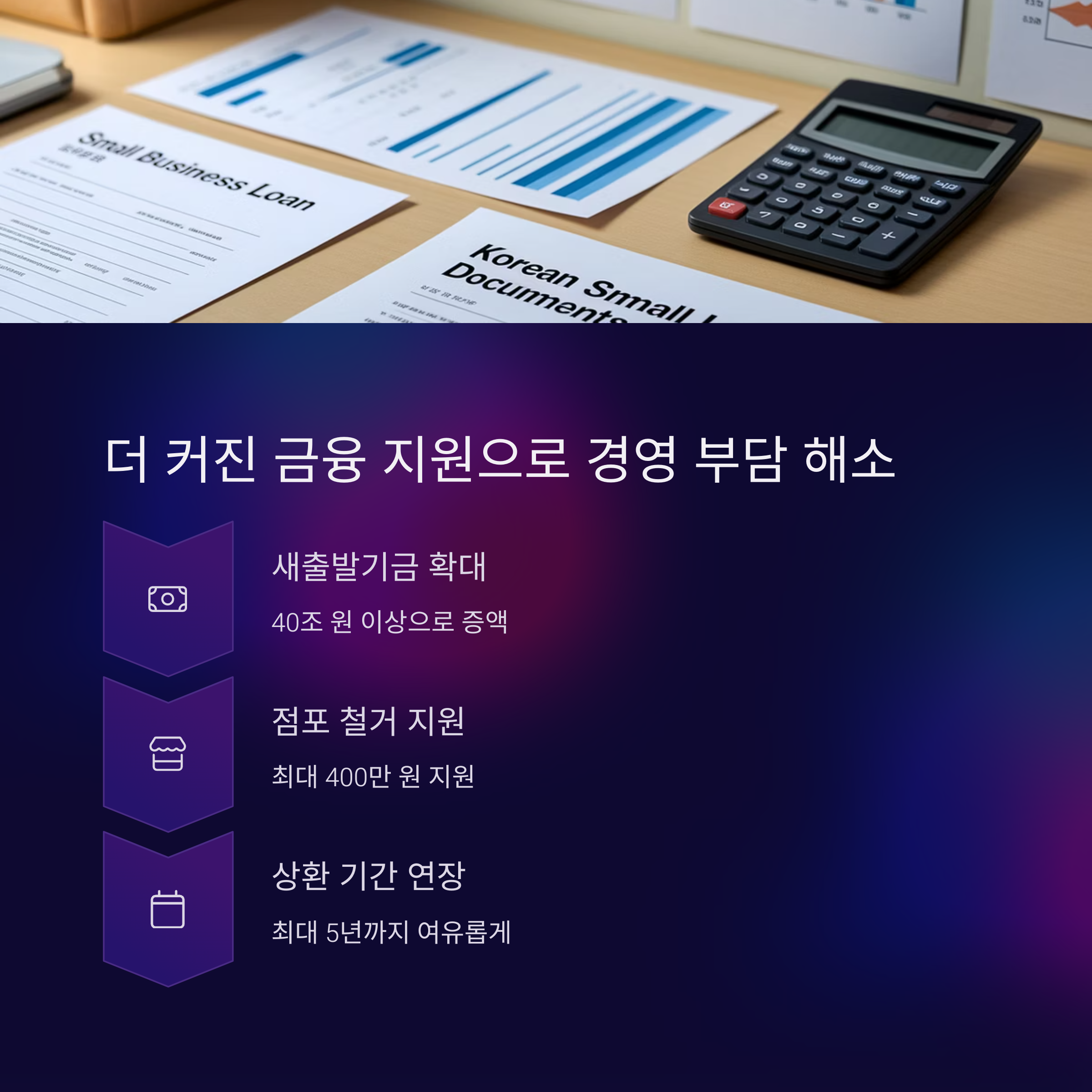 점포 철거 지원금도 기존 최대 250만 원에서 400만 원으로 상향 조정되어 재창업 지원이 강화됩니다.