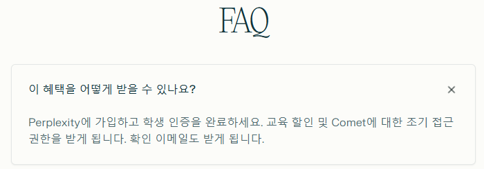 • 학생 전용 조기 액세스 권한 (예: Comet 기능 등) (Perplexity AI)