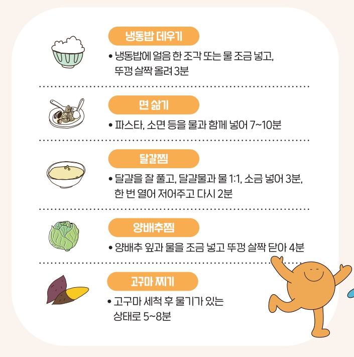 ✔ 냉동밥 데우기: 얼음 1조각 넣고 3분 → 촉촉 복원