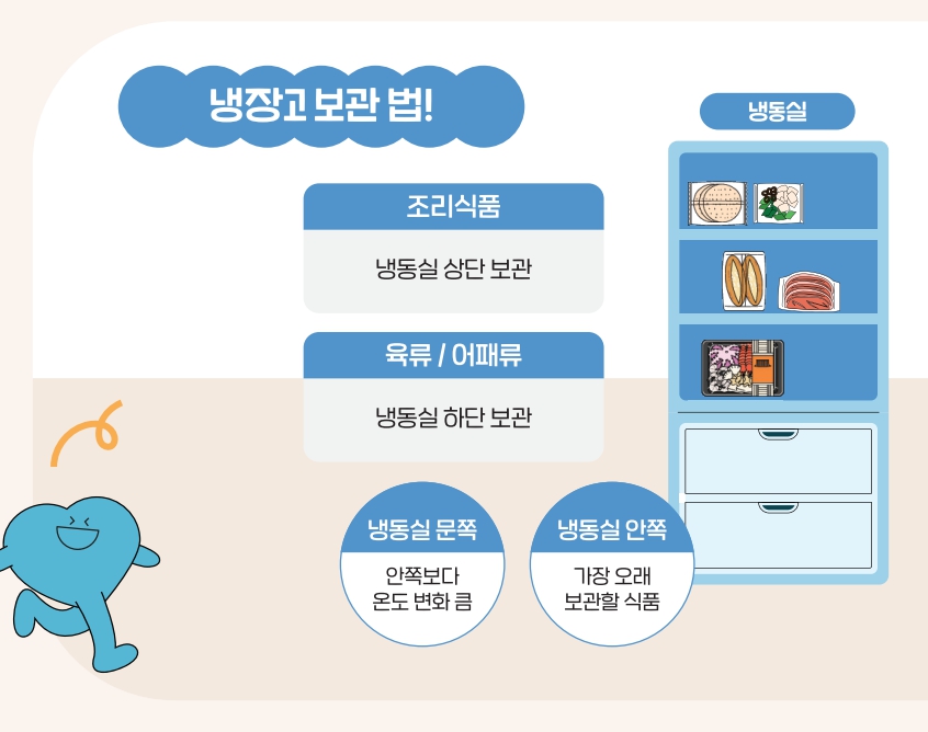 - 냉동실: 조리식품 위쪽, 육류·어패류 아래쪽