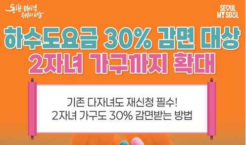 즉, 이제는 2자녀 가구도 하수도 요금 30% 감면을 받을 수 있습니다.