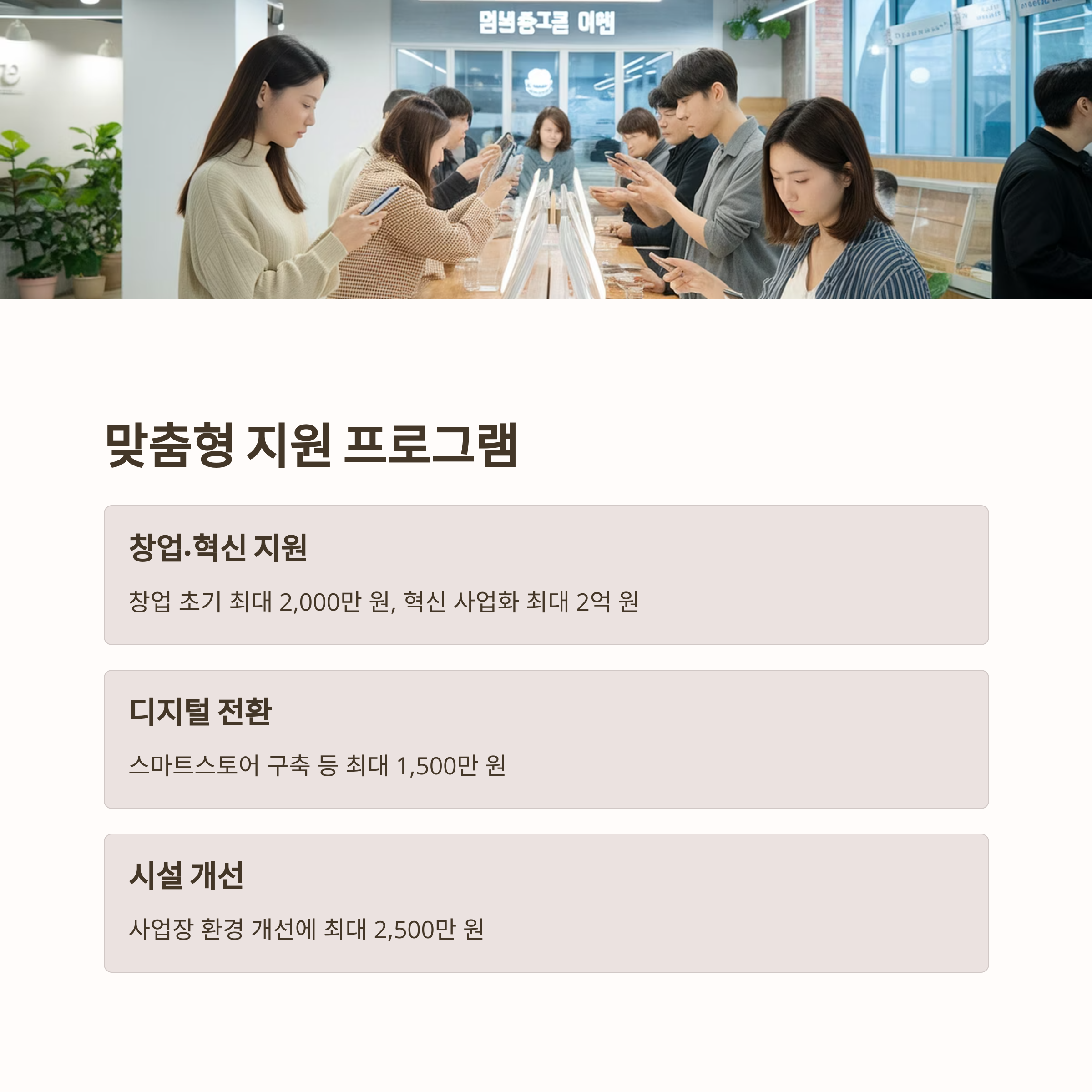 | 시설개선 | 기존 사업자 | 2,500만 원 | 사업장 환경 개선 |
