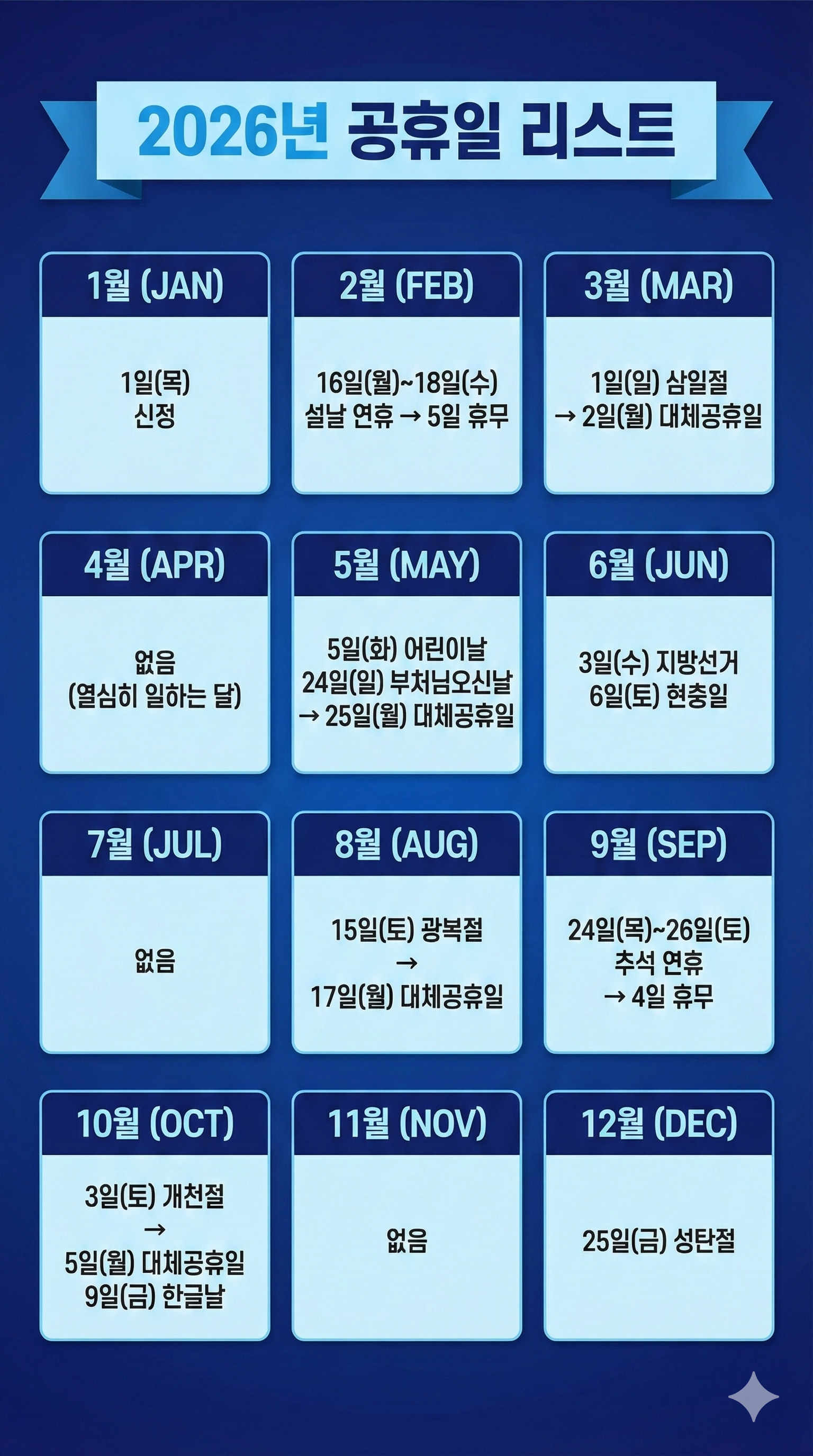✔ 2026년 공휴일 전체 리스트
