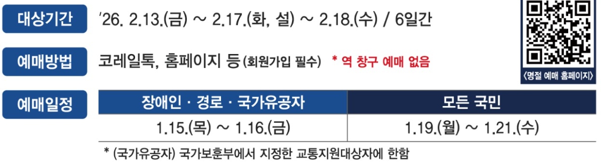 🗓 1. 2026년 설 연휴 승차권 예매 기간