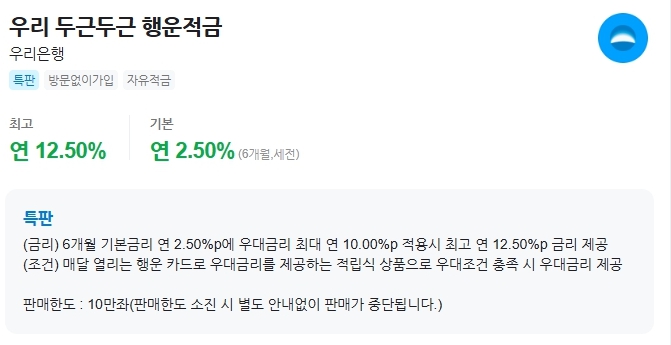 우리 두근두근 행운적금 연 2.50% 최대 10%p 연 12.50% 자유적립