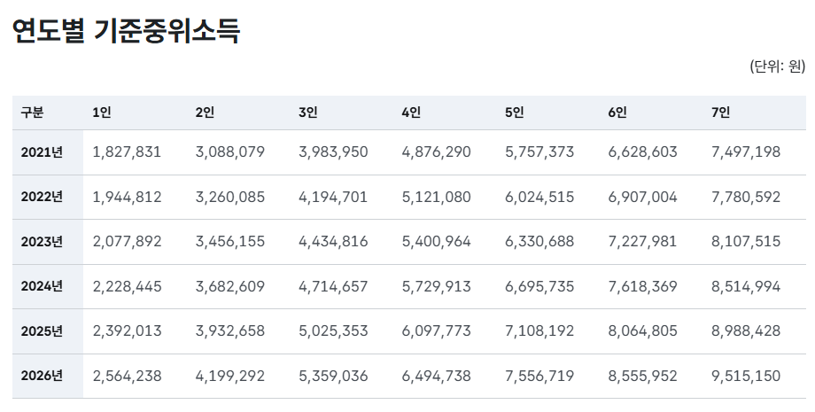 가구원 수월 소득 기준
