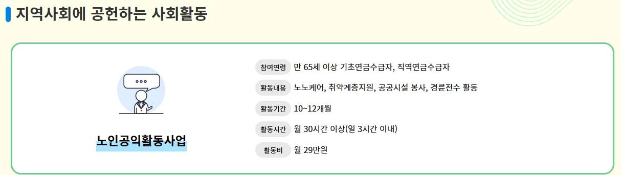 어르신들의 사회참여와 소득보전을 동시에 지원하는 제도입니다.