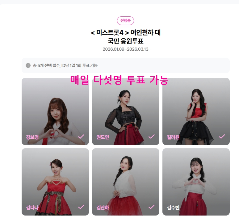 💡 투표에 참여할수록 방송 참여 팬덤 점수 및 이벤트 혜택이 기회로 이어질 수 있으니