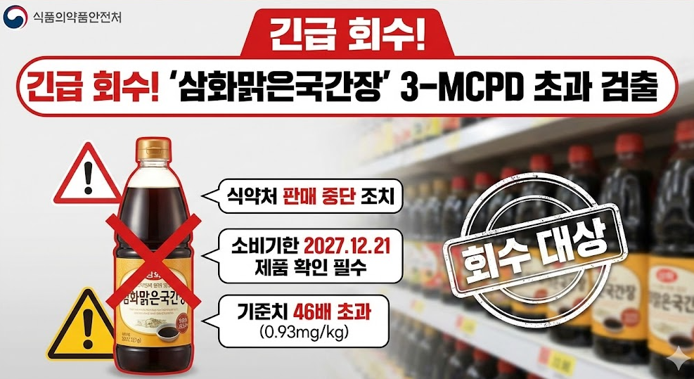최근 식품의약품안전처(식약처)가 ‘삼화맑은국간장’ 제품에 대해 긴급 회수 명령을 내렸습니다.