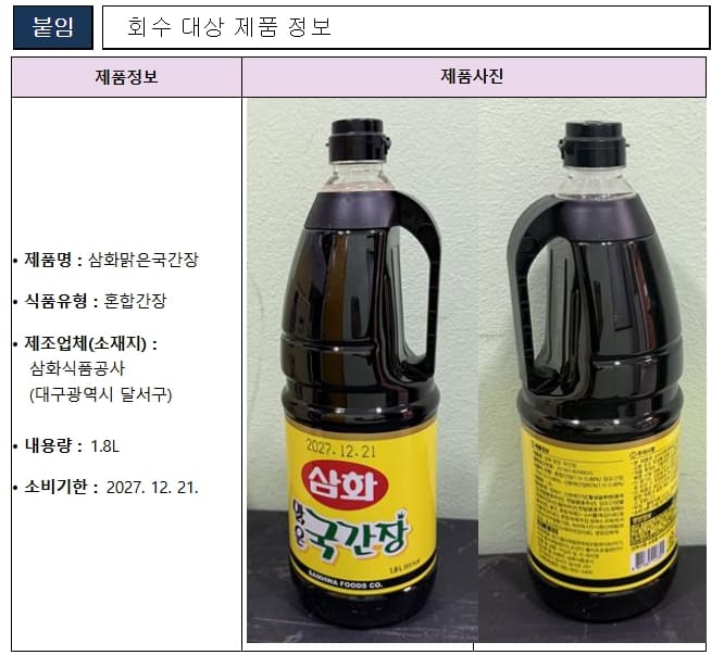 ⚠️ 삼화맑은국간장, 왜 회수됐나?