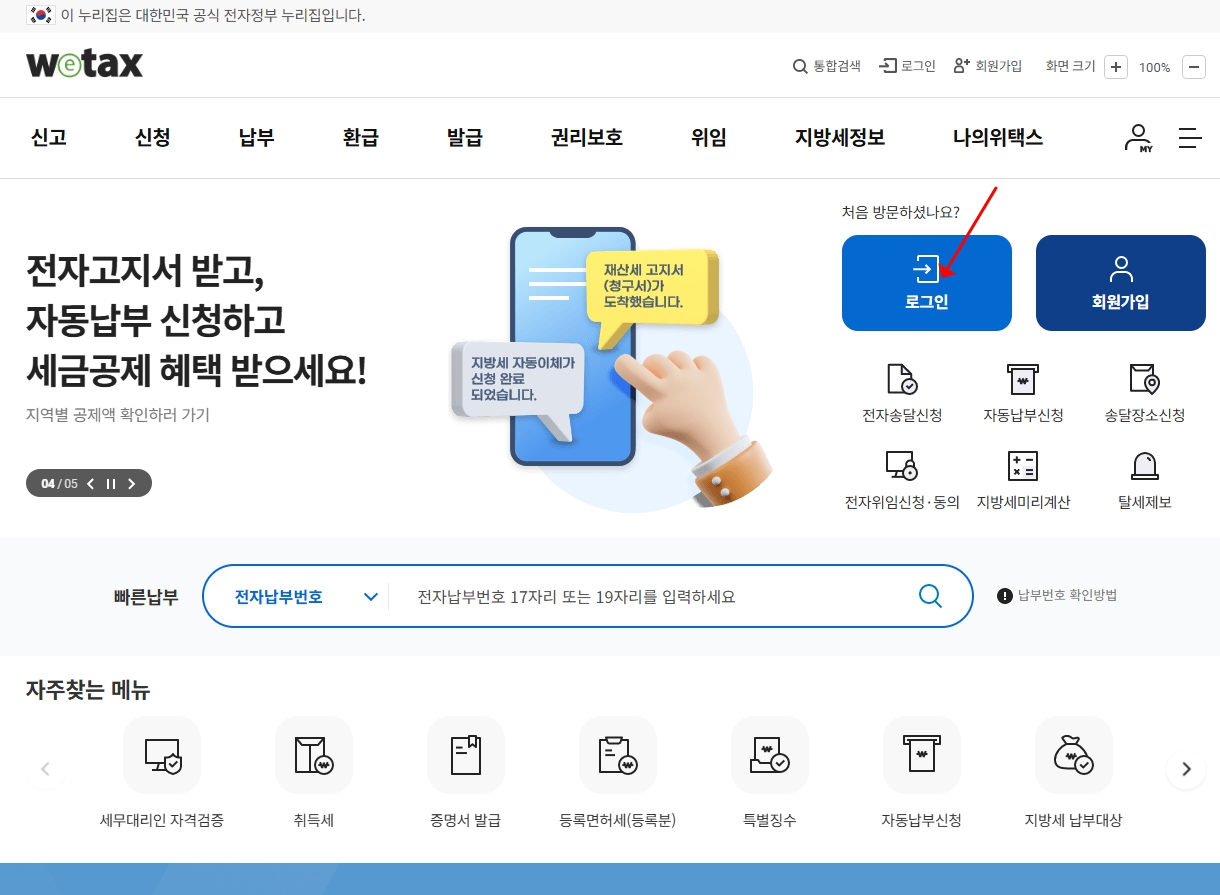 👉 https://www.wetax.go.kr - 회원 로그인 or 인증