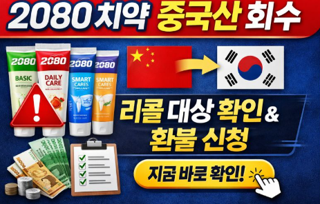 2080 치약 중국산 회수 대상 확인 환불 신청 방법을 단계별로 안내합니다. 대상 확인부터 환불 신청 방법과 준비서류 접수 요령까지 한눈에 정리해 빠르게 환불 받으세요. 2080 치약 중국산 회수