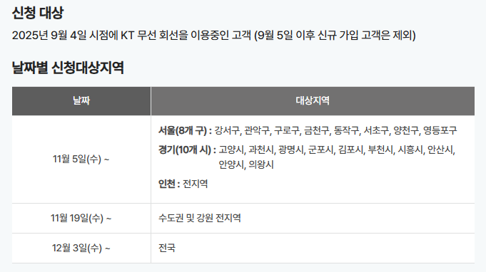 - 대상 고객: 2025년 9월 4일 이전 KT 무선회선 이용 고객